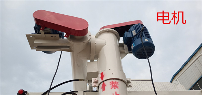 上裝罐體:罐體材質(zhì)采用4mm優(yōu)質(zhì)碳鋼板,整車3條絞龍,由3個5.5KW電機380V外接電源帶動頂部絞龍用液壓控制舉升,可左右旋轉(zhuǎn)180°。罐體內(nèi)分為貳個倉,可以獨立控制各分倉卸料順序和速度。